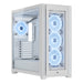 Corsair 5000X RGB QL Edition. Form factor: Midi Tower, Type: PC, Product colour: White. Supported power supply form factors: ATX. Front fans installed: 3x 120 mm, Front fans diameters supported: 120,140 mm, Side fans diameters supported: 120 mm. Supported HDD sizes: 3.5", SSD form factor: 2.5". Width: 248 mm, Depth: 520 mm, Height: 520 mm