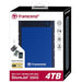 Transcend StoreJet 25H3 4TB Blue. HDD capacity: 4 TB, HDD size: 2.5". USB version: 3.2 Gen 1 (3.1 Gen 1). HDD speed: 5400 RPM. Product colour: Blue, Navy