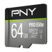 PNY PRO Elite. Capacity: 64 GB, Flash card type: MicroSDXC, Flash memory class: Class 10, Internal memory type: UHS-I, Read speed: 100 MB/s, UHS Speed Class: Class 3 (U3). Product colour: Black, Grey