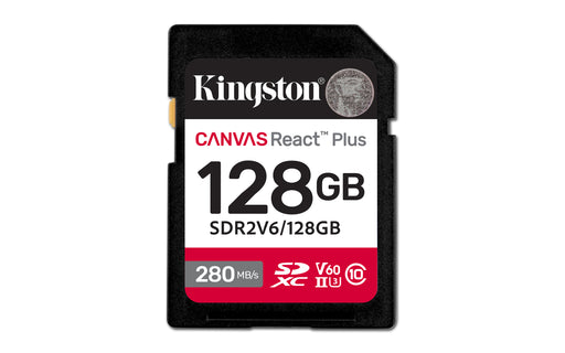 Kingston Technology 128GB Canvas React Plus SDXC UHS-II 280R/100W U3 V60 for Full HD/4K